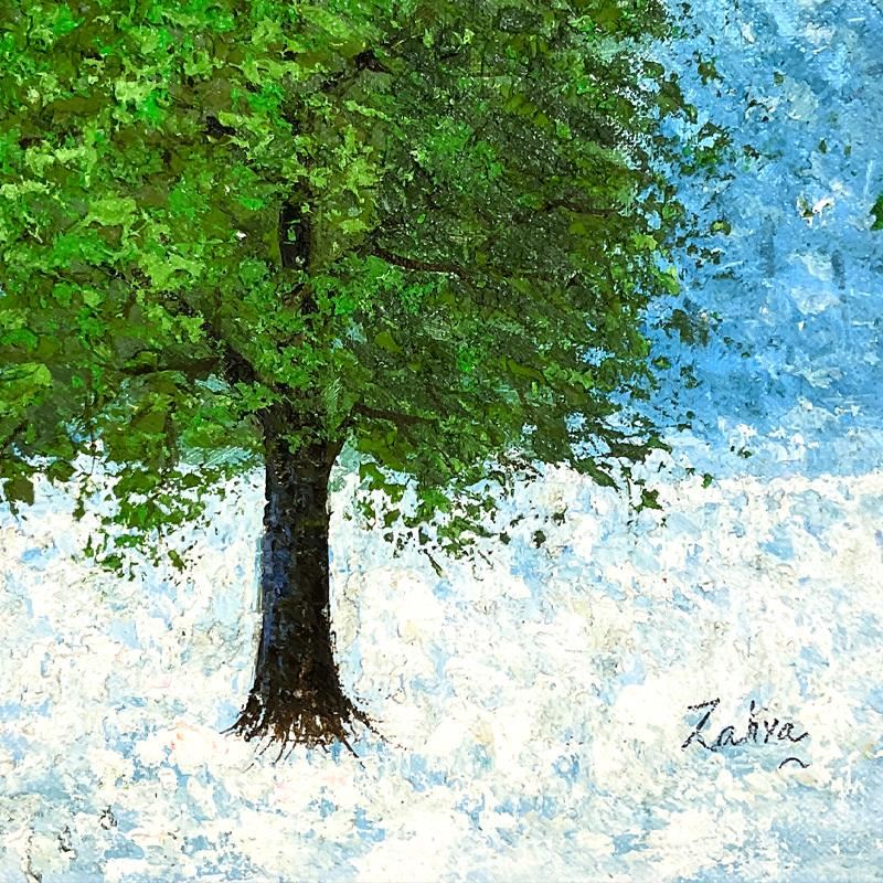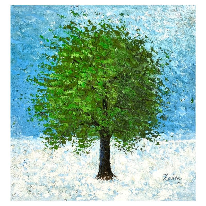 This is an original acrylic painting on canvas by Zahra, hand signed by the artist. Includes Letter of Authenticity. Measures approx. 24" x 24" (image).