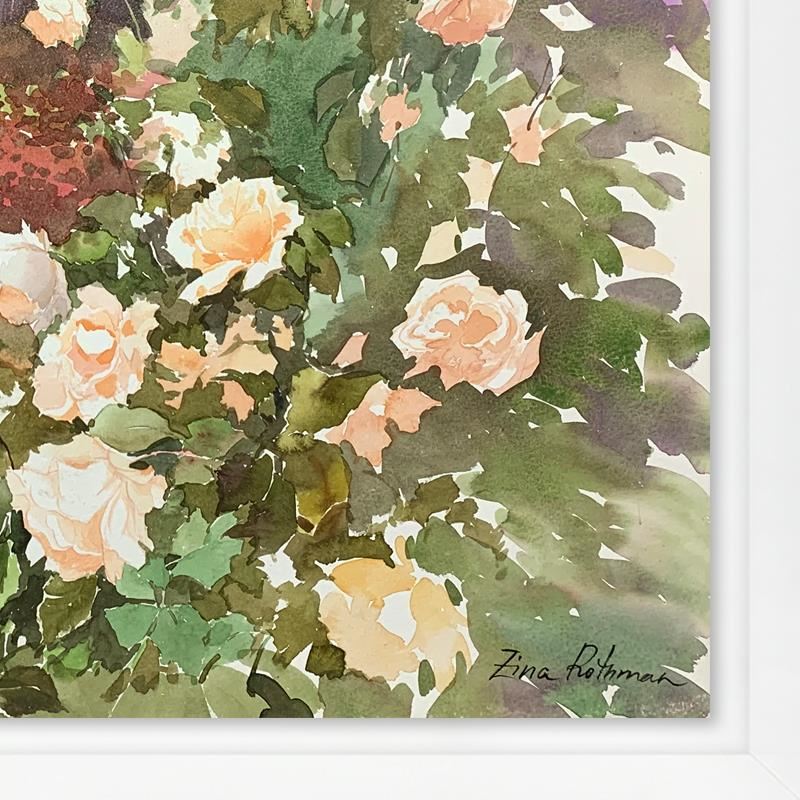 This is an untitled original painting on paper by Zina Roitman. The piece is hand signed, framed, and comes with a letter of authenticity. Measures approximately 22.5" x 29" (framed), 18.5" x 25" (sheet). This item requires special handling and may have a longer than usual turnaround.