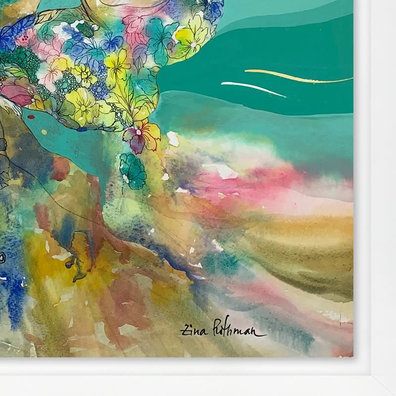 This is an untitled original painting on paper by Zina Roitman. The piece is hand signed, framed, and comes with a letter of authenticity. Measures approximately 24" x 32.5" (framed), 20" x 28.5" (sheet). This item requires special handling and may have a