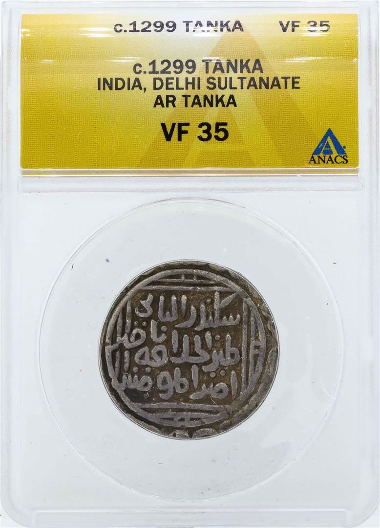 One c.1299 India Tanka Coin ANACS VF35. ANACS Certified.