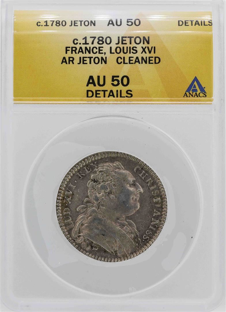 One c.1780 France Louis XVI Jeton Coin ANACS AU50 Details. ANACS Certified.