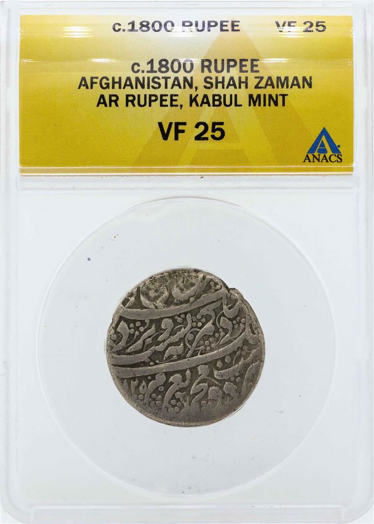 One c.1800 Afghanistan Rupee Shah Zaman Coin ANACS VF25. ANACS Certified.