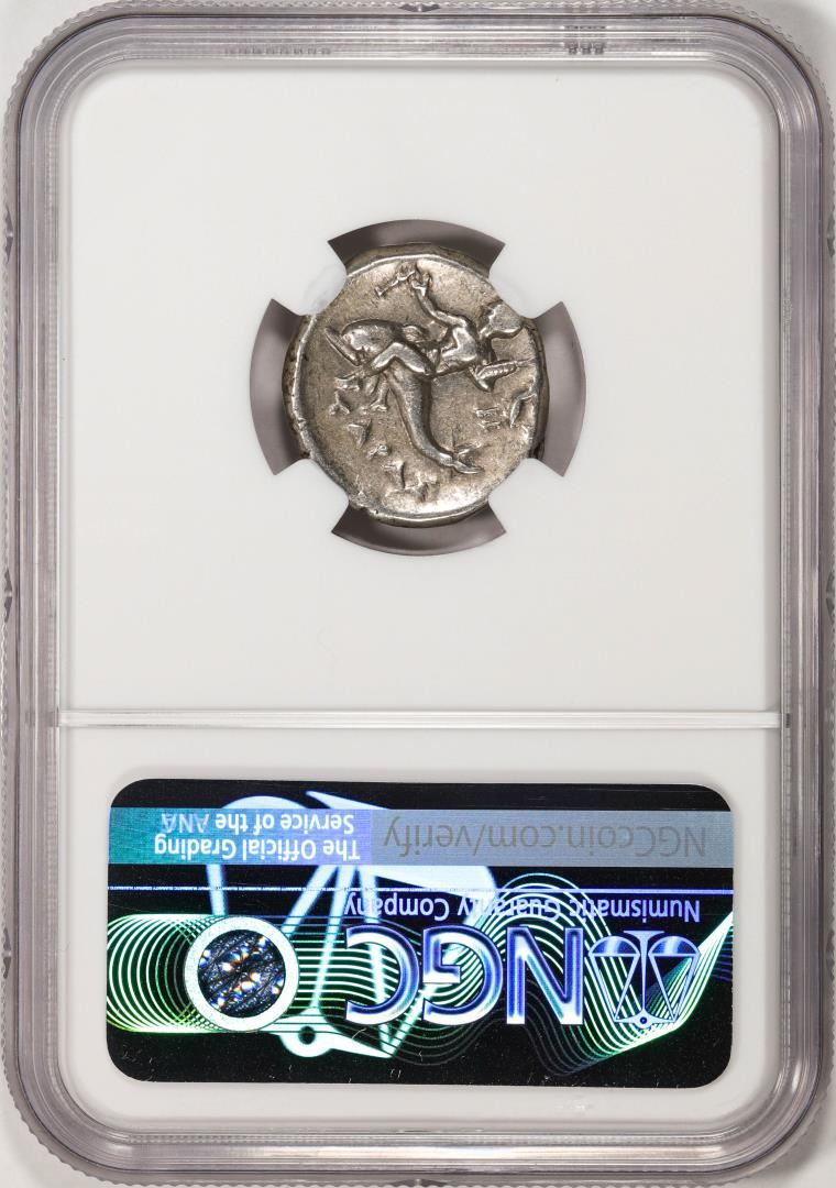 One c.280-240 BC Calabria Taras AR Didrachm Ancient Coin NGC Ch VF. NGC Certified.